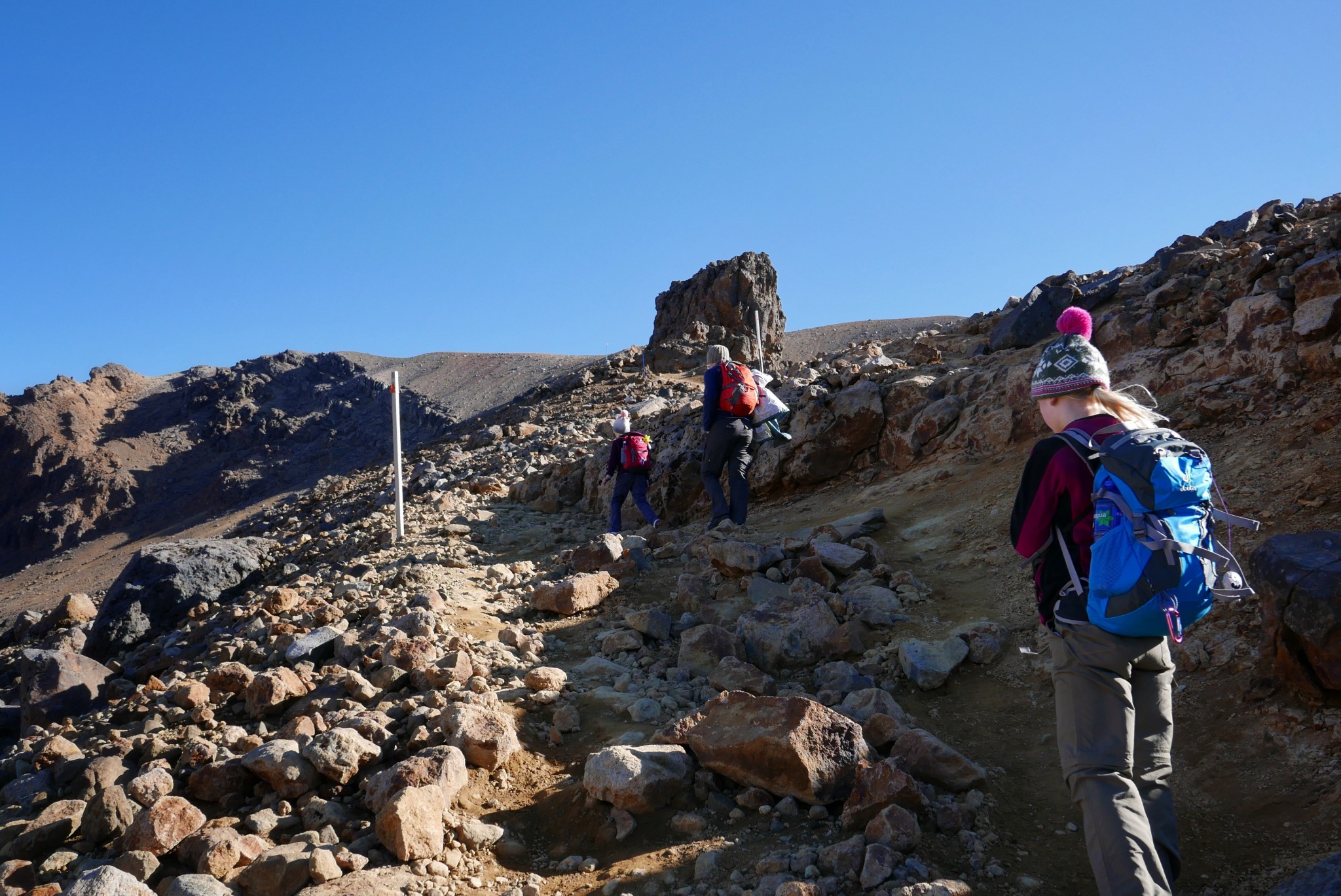 From Mangatepopo Car Park the track begins with a flat stretch, before it gets steeper at the Devil’s Staircase.