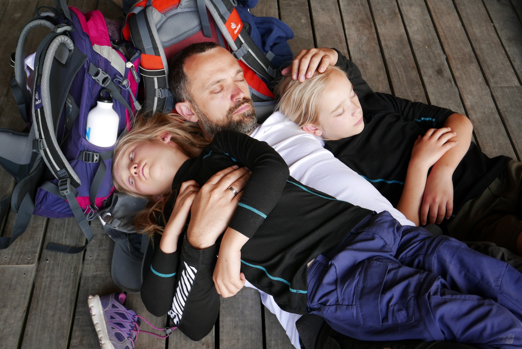 At the Ketetahi Hut, Frida was finding it hard to find new energy. Cuddling up with Mads for a little while with shoes off seemed to do the trick, though.