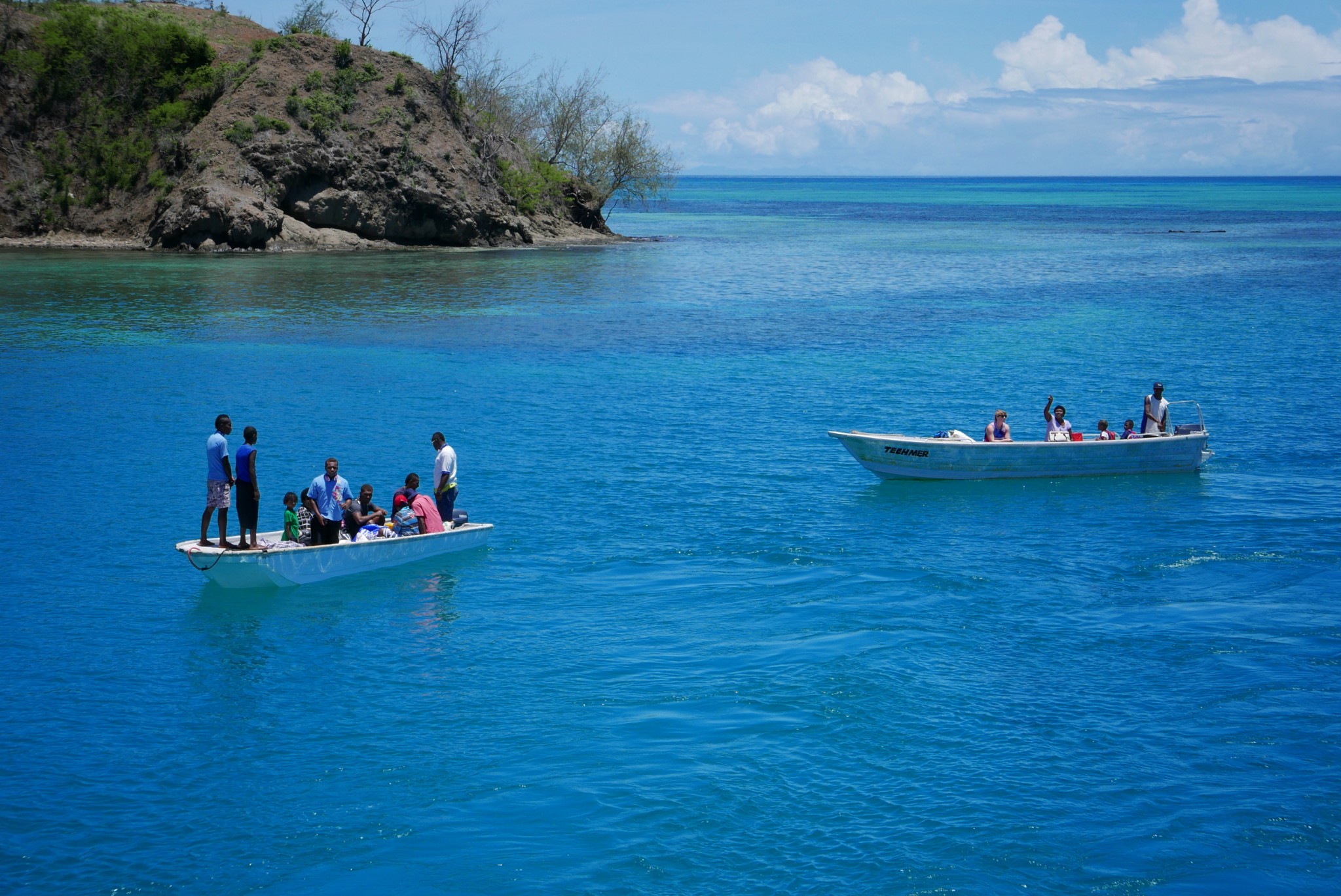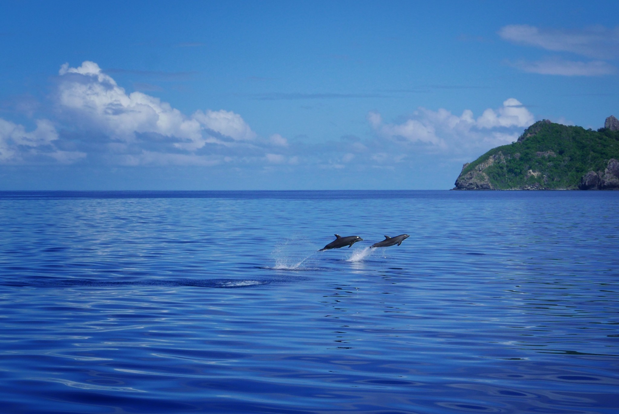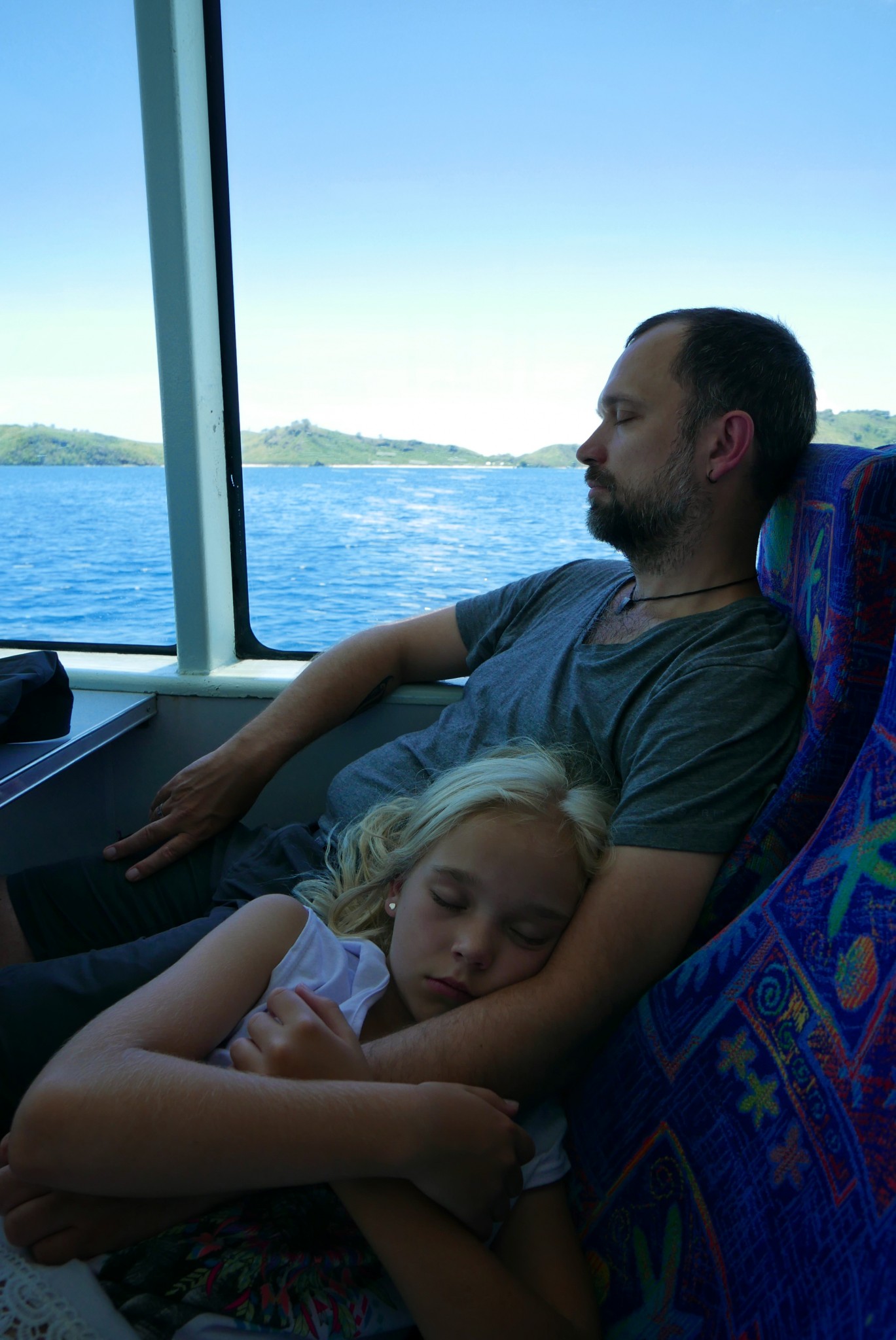 The sail with the Yasawa Flyer lasted four and a half hours, but the sea was smooth, and the views of the islands we passed on the way there were beautiful. At one point Ronja and I were outside at the bow of the boat enjoying the view, when suddenly two dolphins jumped out of the water not far from the boat. What a treat!