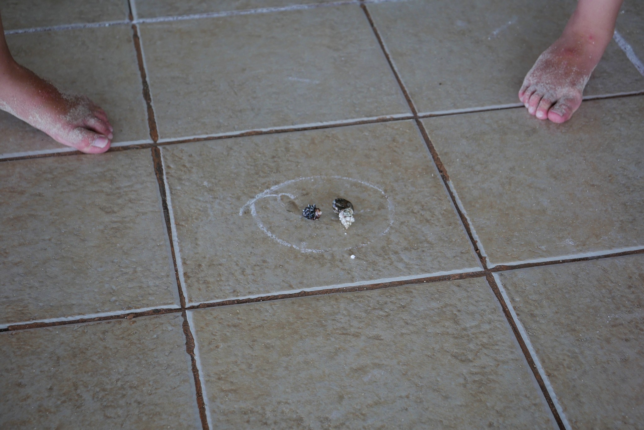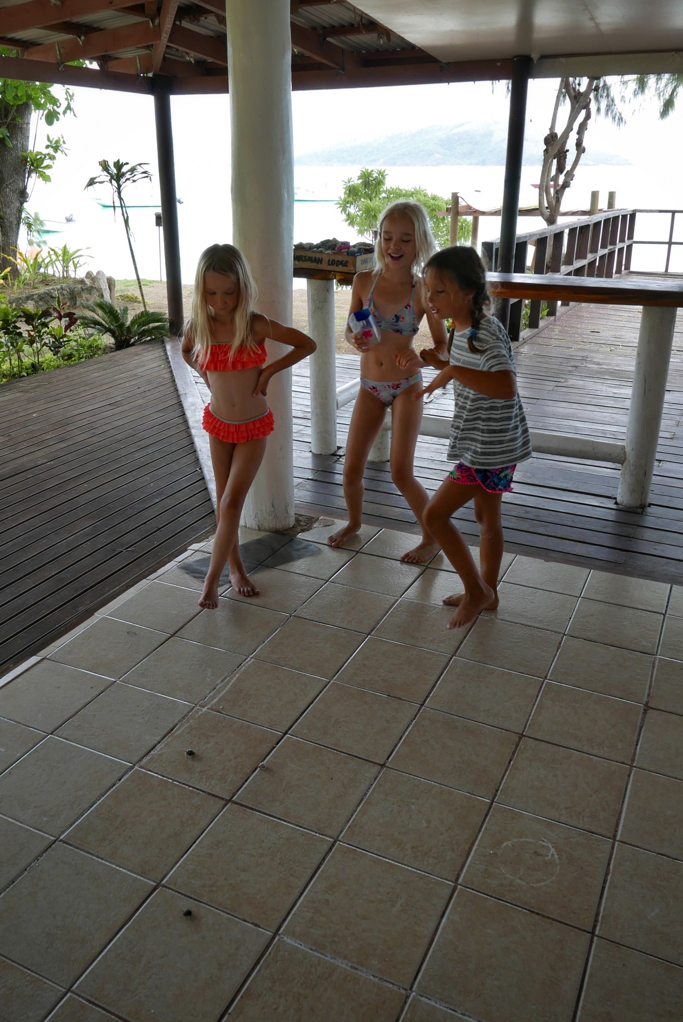 When we got back from our dive, we found the girls busy doing hermit crab race with the girls from the Czech family. Some of the men from the staff had helped the girls draw a racing track with chalk on the floor, and everyone was cheering. What a safe, secluded environment we found ourselves in.